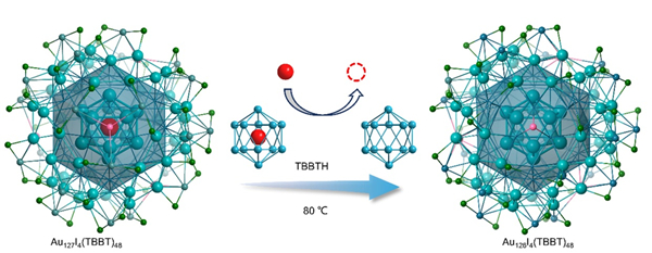 图2. Au127和Au126纳米团簇的内核结构和转化条件。